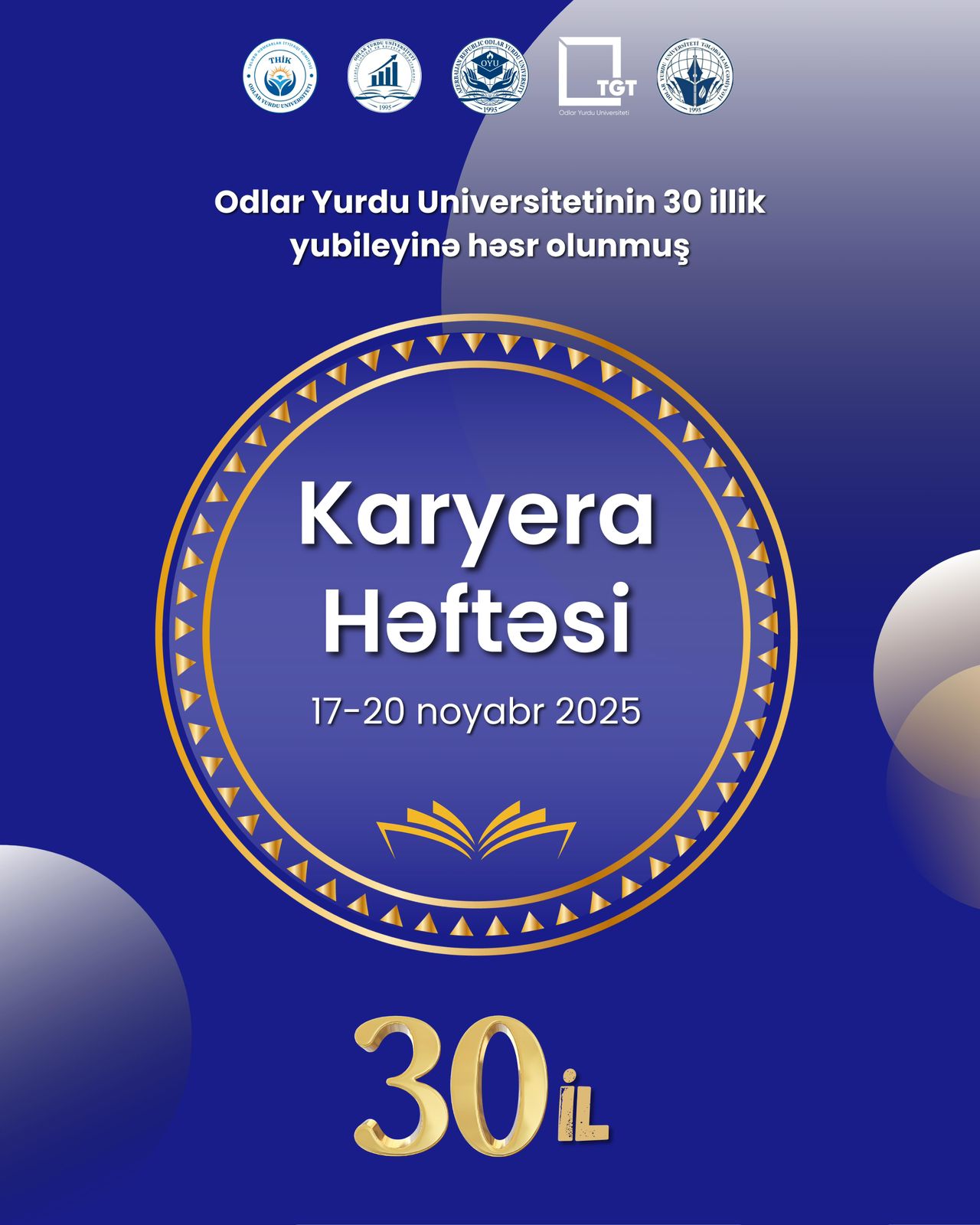 Noyabrın 17-20 tarixində Odlar Yurdu Universitetinin Strateji inkişaf və karyera departamenti, Yaradıcılıq və mədəni tədbirlər departamenti və tələbə təşkilatlarının təşkilatçılığı ilə universitetin 30 illik yubileyinə həsr edilmiş “Karyera həftəsi” keçiriləcəkdir.